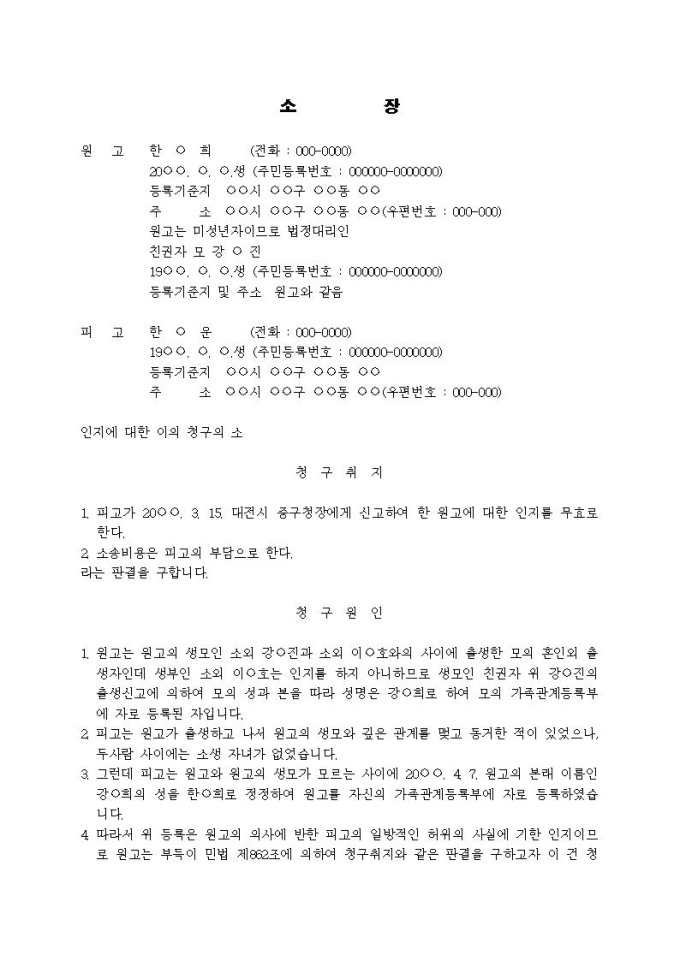 인지에 대한 이의청구의 소장