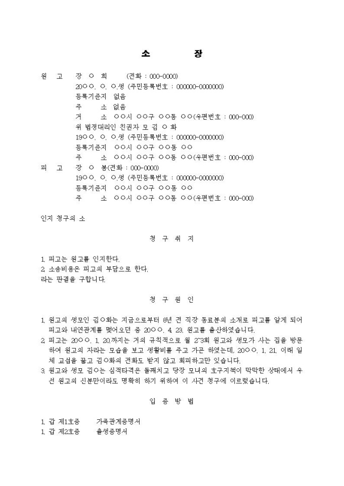 9,000원/월인지청구의 소장(원고의 신분확인)입니다.
