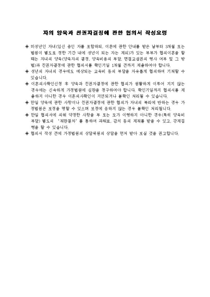 9,000원/월자의 양육과 친권자결정에 관한 협의서 작성요령입니다.
