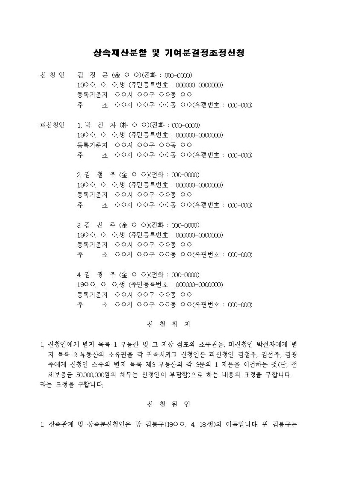 9,000원/월재산분할 및 기여분결정조정신청서입니다.