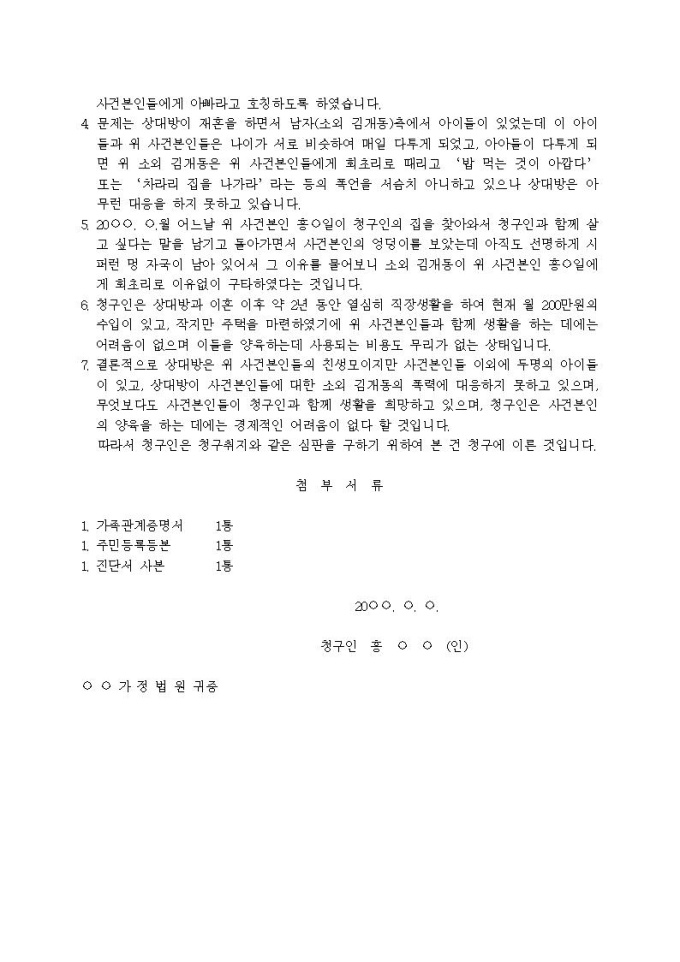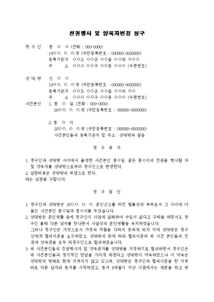 9,000원/월친권행사 및 양육자변경 심판청구서(1)입니다.