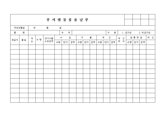 부서별 물품출납부