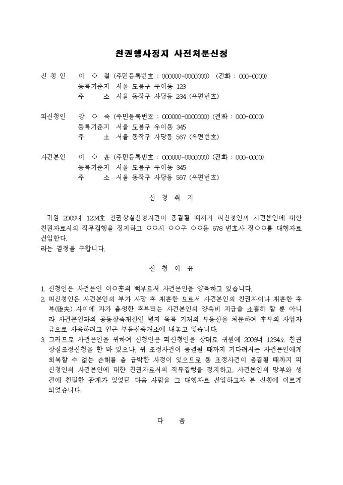 친권행사정지 사전처분신청서(2)입니다.