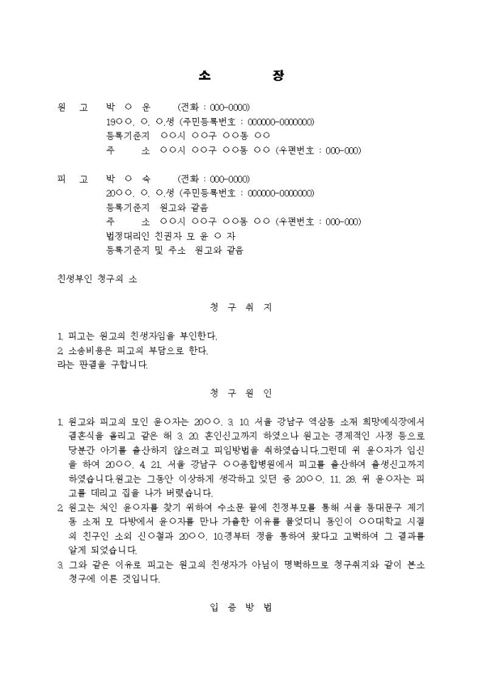 친생부인 청구의 소장(1)