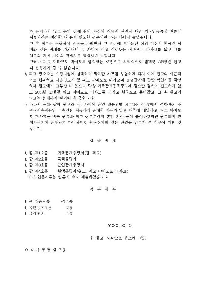 친생부인의 소장입니다.
