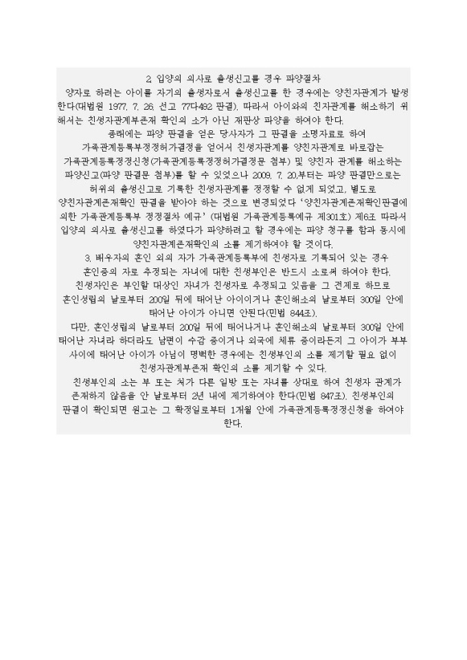 친생자관계 부존재확인 청구의 소장(자녀가 없는 관계로 입적)입니다.