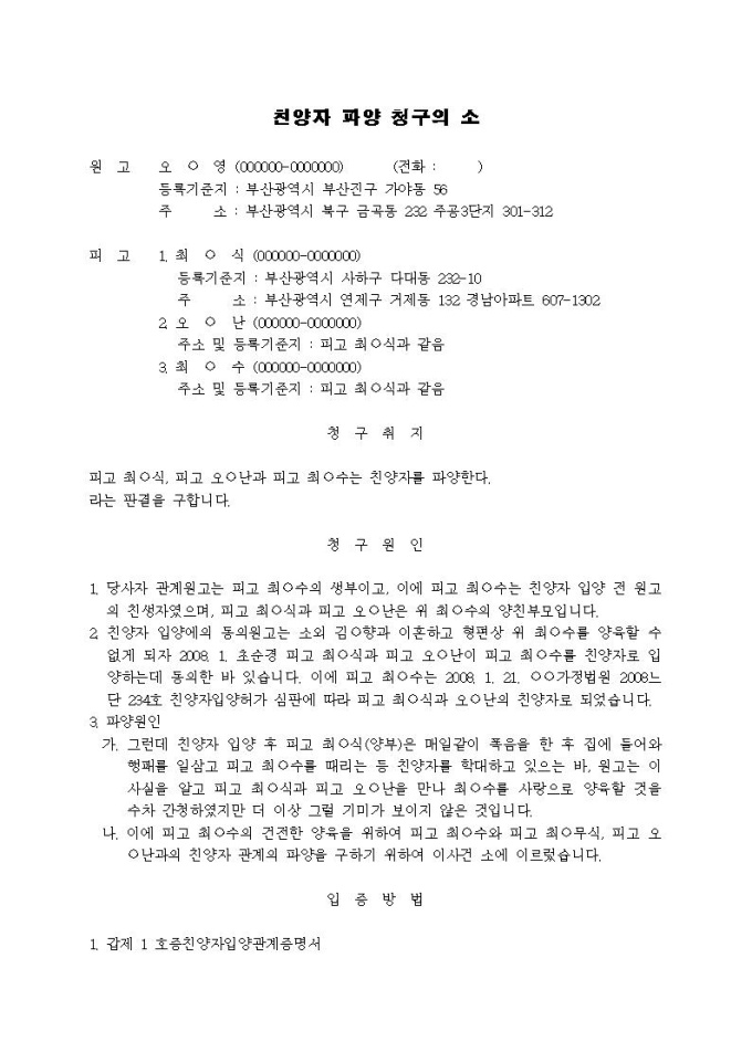 9,000원/월친양자파양 청구의 소장(친양자를 학대)(3)입니다.
