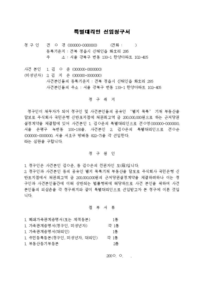 9,000원/월특별대리인 선임청구서(근저당권설정계약)입니다.