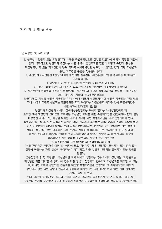9,000원/월특별대리인 선임청구서(주택청약정기예금에 대한 명의변경절차)입니다.