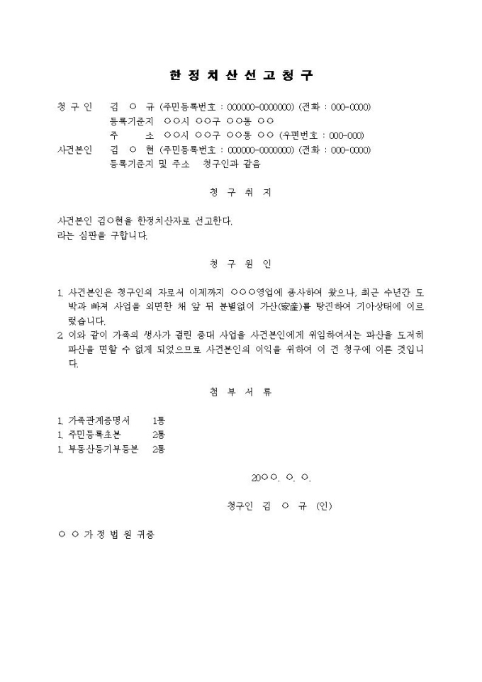 9,000원/월한정치산선고 청구서(2)입니다.