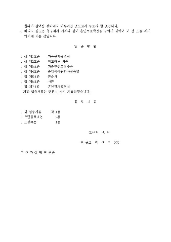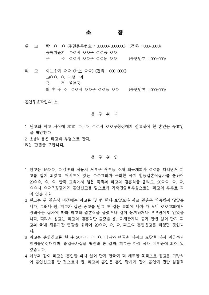 혼인무효확인의 소장