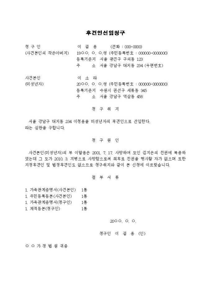 9,000원/월후견인 선임청구서(부모 사망으로 친권자 없음)(2)입니다.