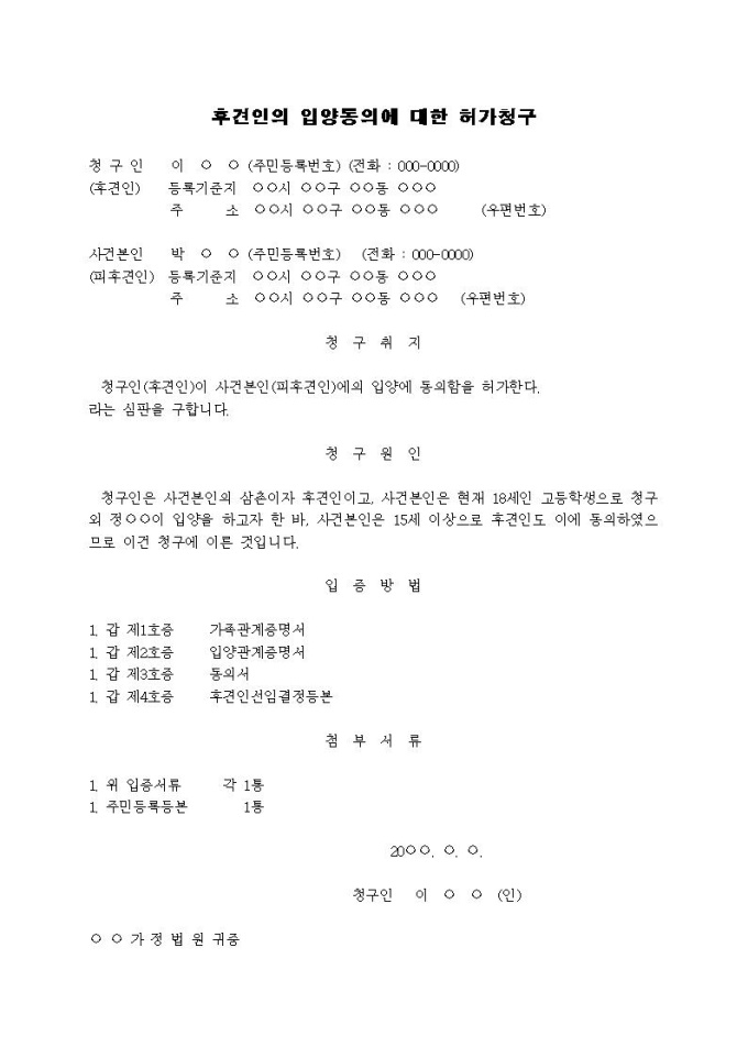 9,000원/월후견인의 입양(파양)동의에 대한 허가청구서입니다.