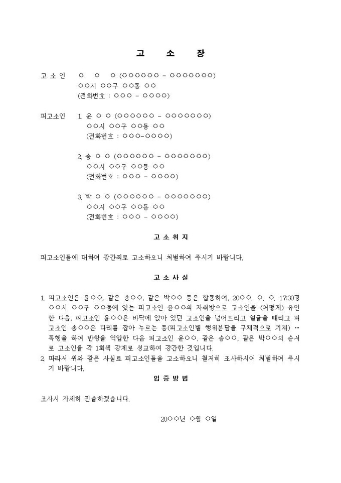 9,000원/월(고소장)강간죄(합동하여 강간)입니다.