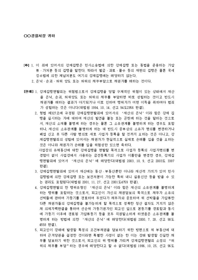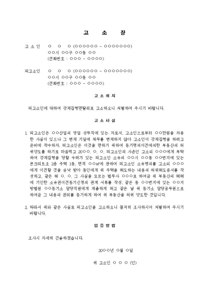 9,000원/월(고소장)강제집행면탈죄(허위매매계약)입니다.