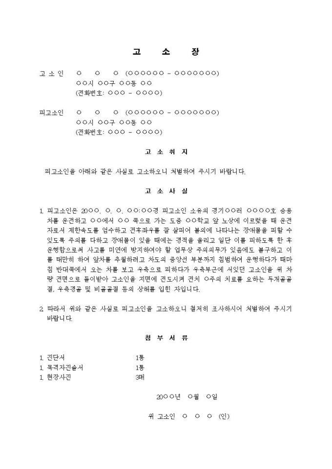 (고소장)교통사고처리특례법위반(중앙선 침범)입니다.