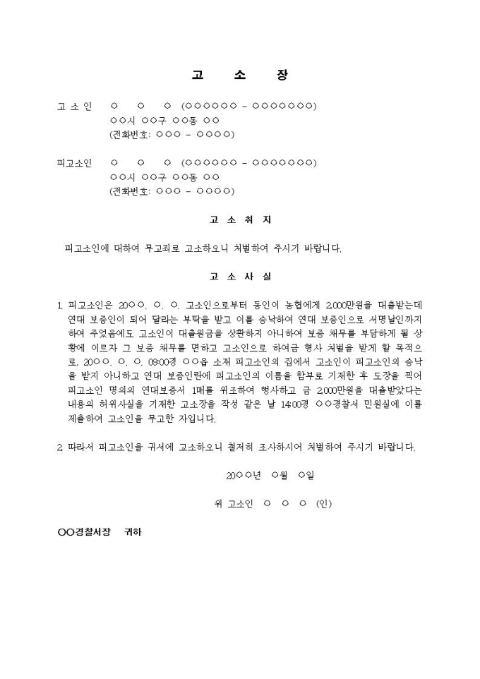 (고소장)무고죄(연대보증서 위조 대출)입니다.
