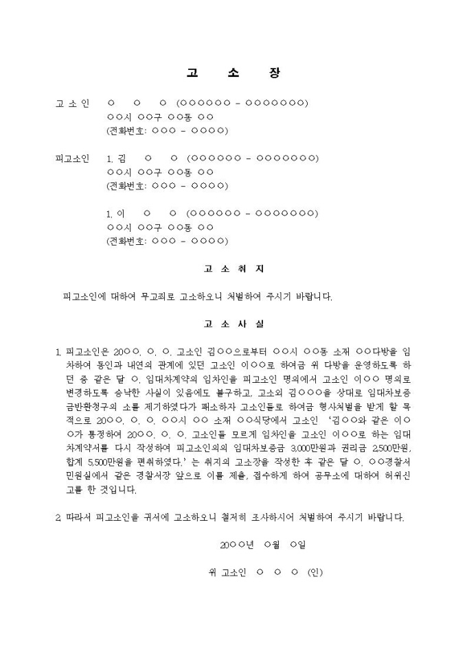 (고소장)무고죄(임대차계약서 다시 작성)