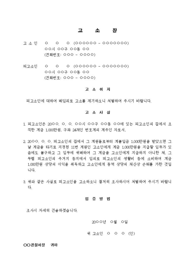 9,000원/월(고소장)배임죄(계돈 미지급)입니다.