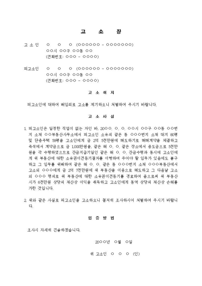 (고소장)배임죄(부동산 이중매매)(1)입니다.