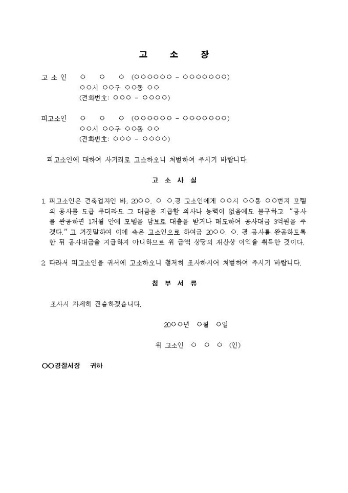 (고소장)사기죄(공사대금 편취)입니다.