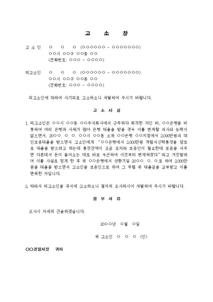 9,000원/월(고소장)사기죄(대출보증 부탁)입니다.