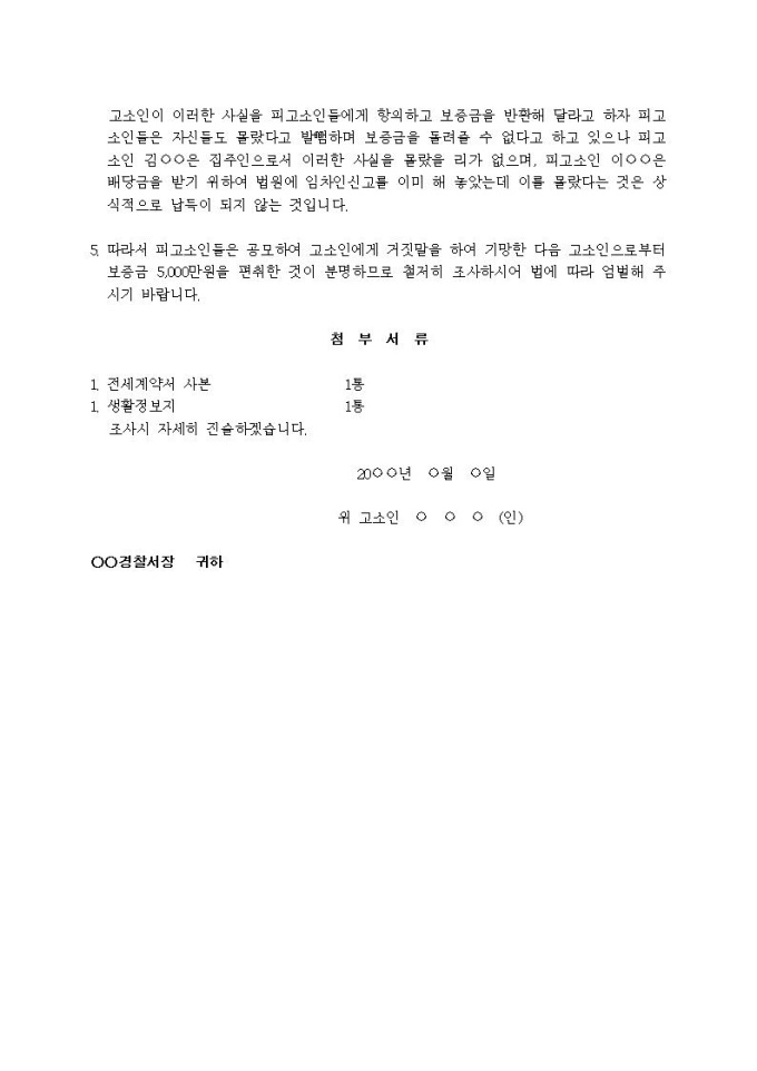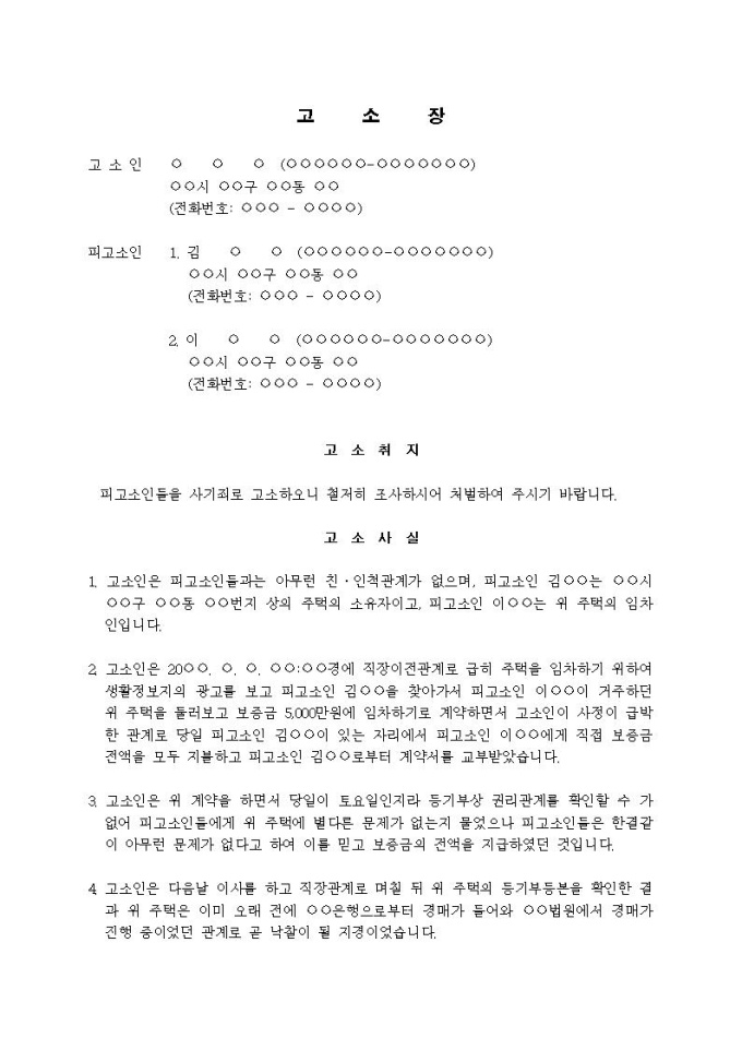 9,000원/월(고소장)사기죄(생활정보지를 이용 임대차보증금 편취)입니다.