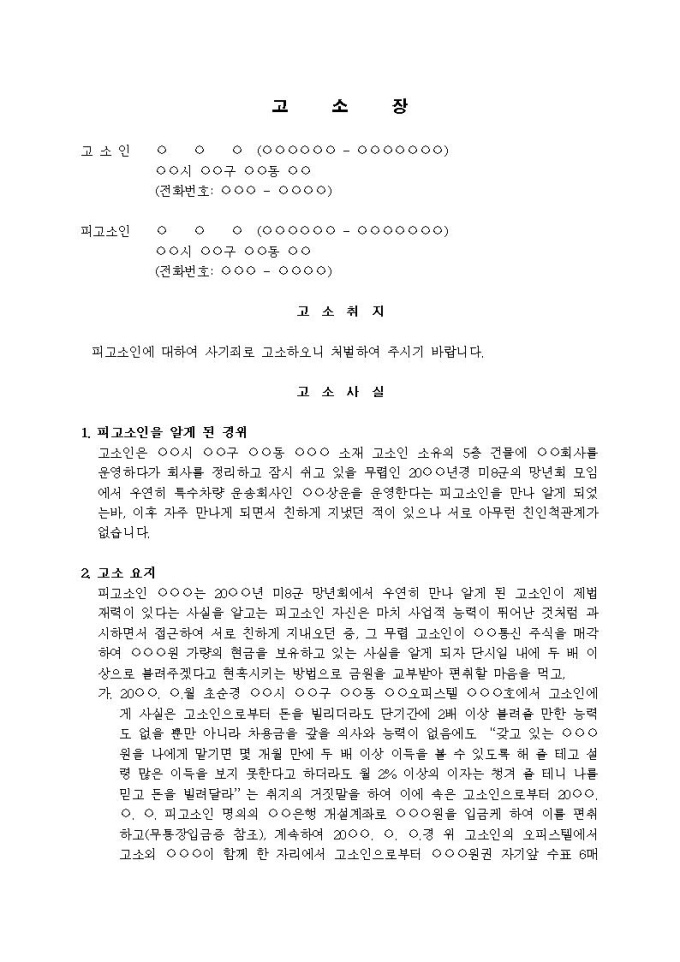 9,000원/월(고소장)사기죄(수표, 현금 등 편취)입니다.