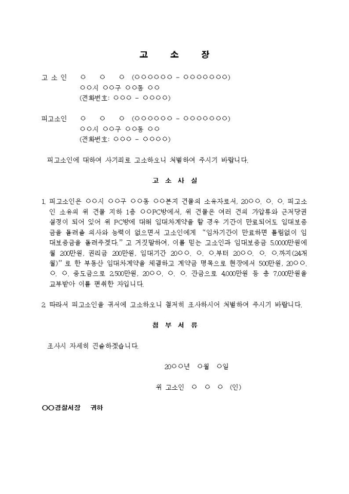 9,000원/월(고소장)사기죄(임대보증금 편취)입니다.