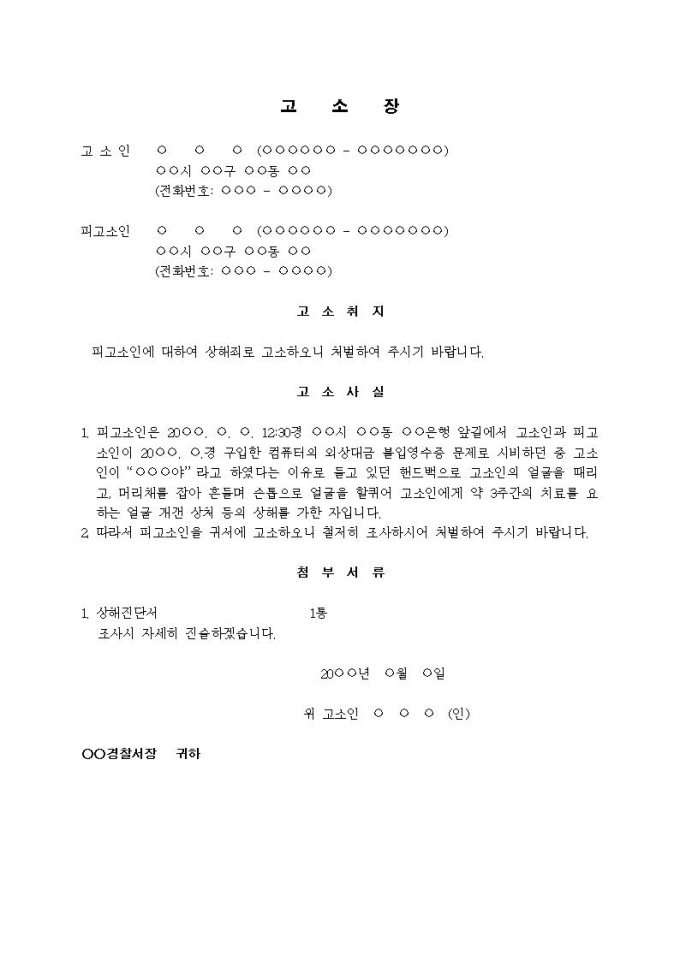 9,000원/월(고소장)상해죄(컴퓨터 외상대금 관계로 상해)입니다.