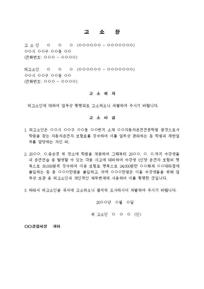 9,000원/월(고소장)업무상 횡령죄(학원수강생들로부터 이중 보험료 명목으로 횡령)입니다.
