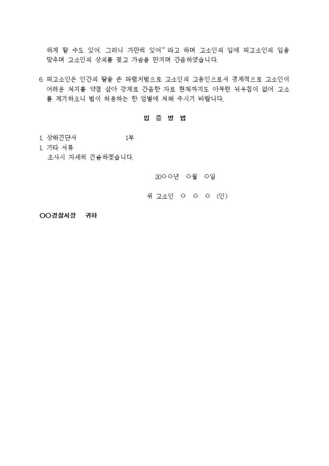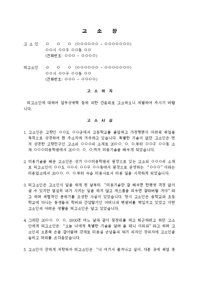 9,000원/월(고소장)업무상위력 등에 의한 간음죄(미용실 수습여직원을 간음)입니다.