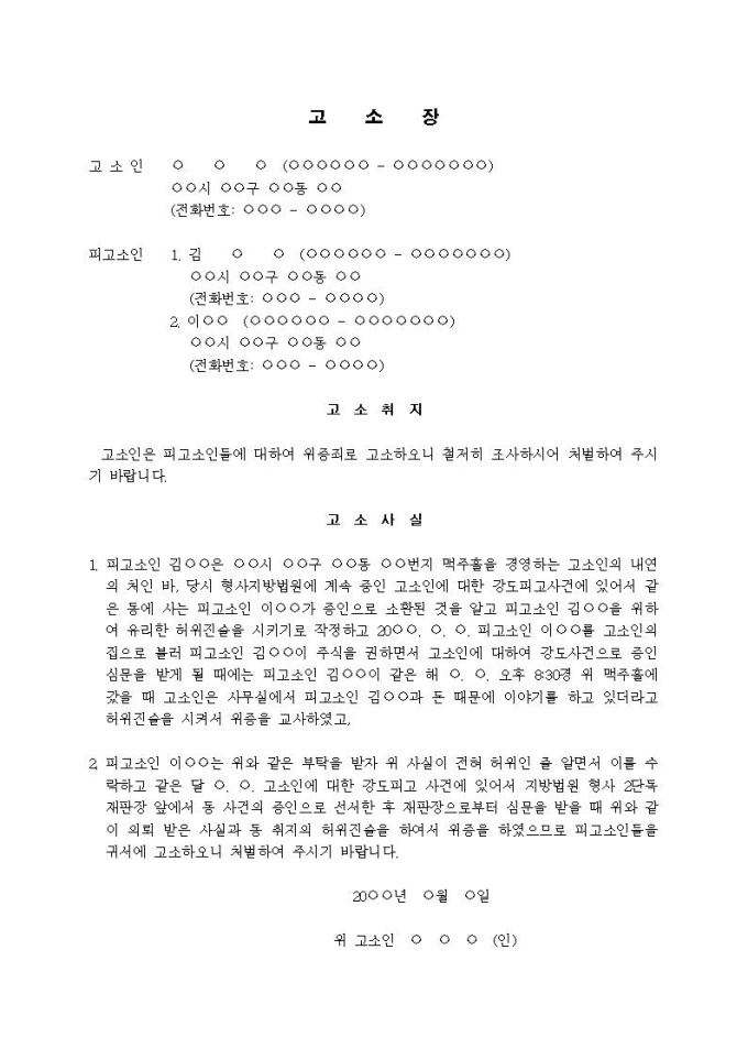 (고소장)위증죄(강도피해사건 허위진술)