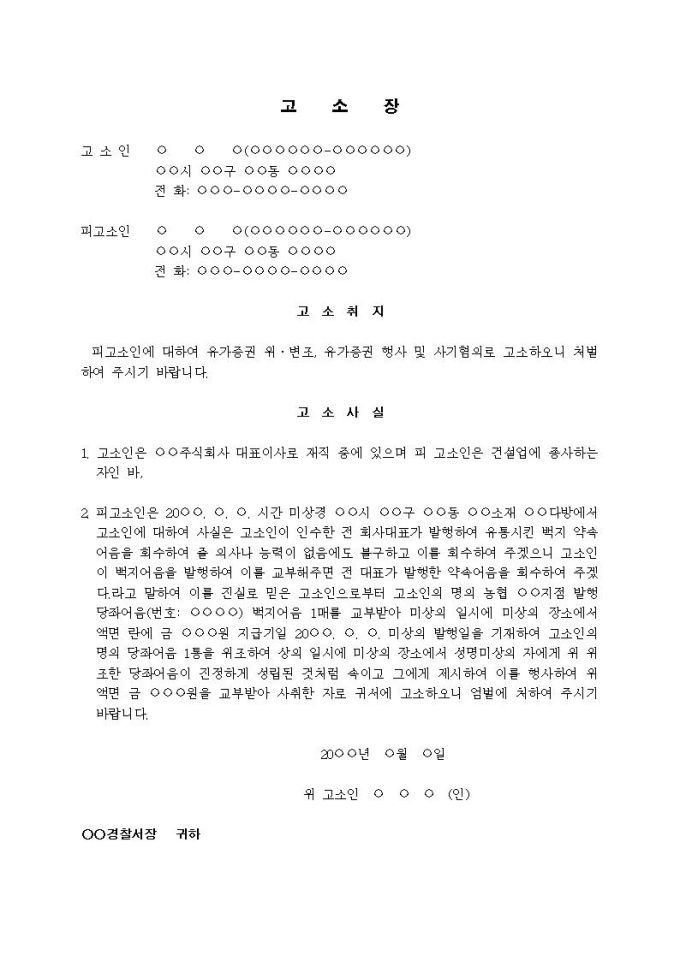 9,000원/월(고소장)유가증권 위,변조 등(당좌어음 위조 등)입니다.