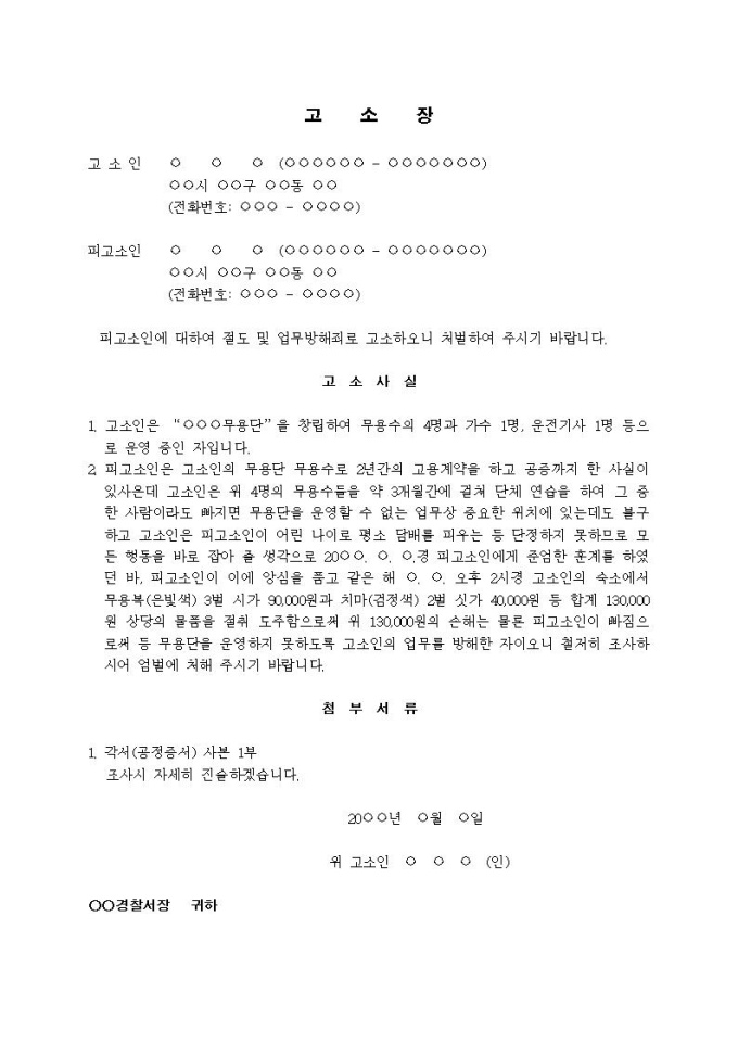 9,000원/월(고소장)절도 및 업무방해죄(무용복 등 절취, 도주)입니다.