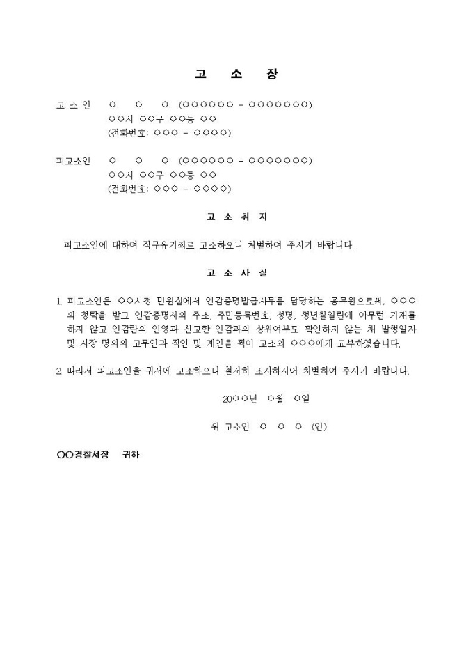 9,000원/월(고소장)직무유기죄(공무원이 청탁받고 인감증명 허위발급)입니다.