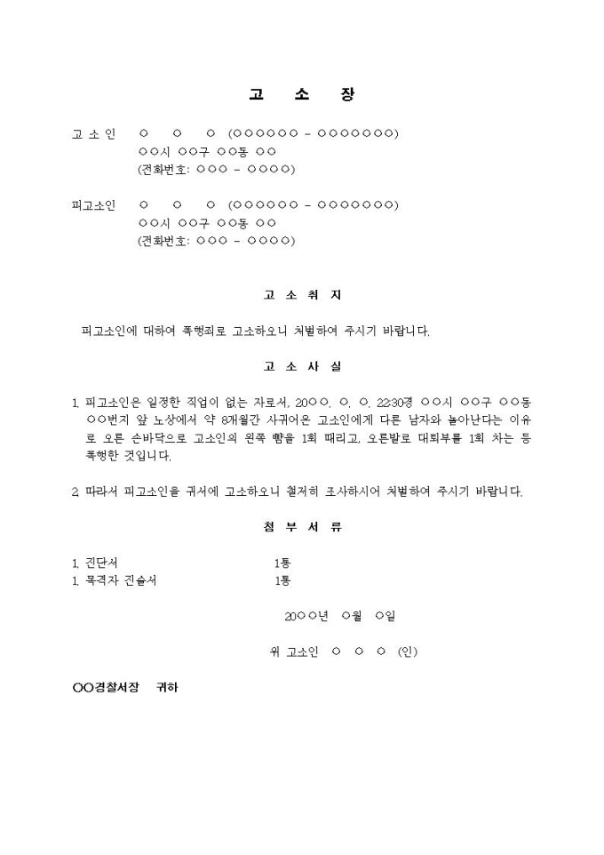 (고소장)폭행죄(애인이 폭행)입니다.