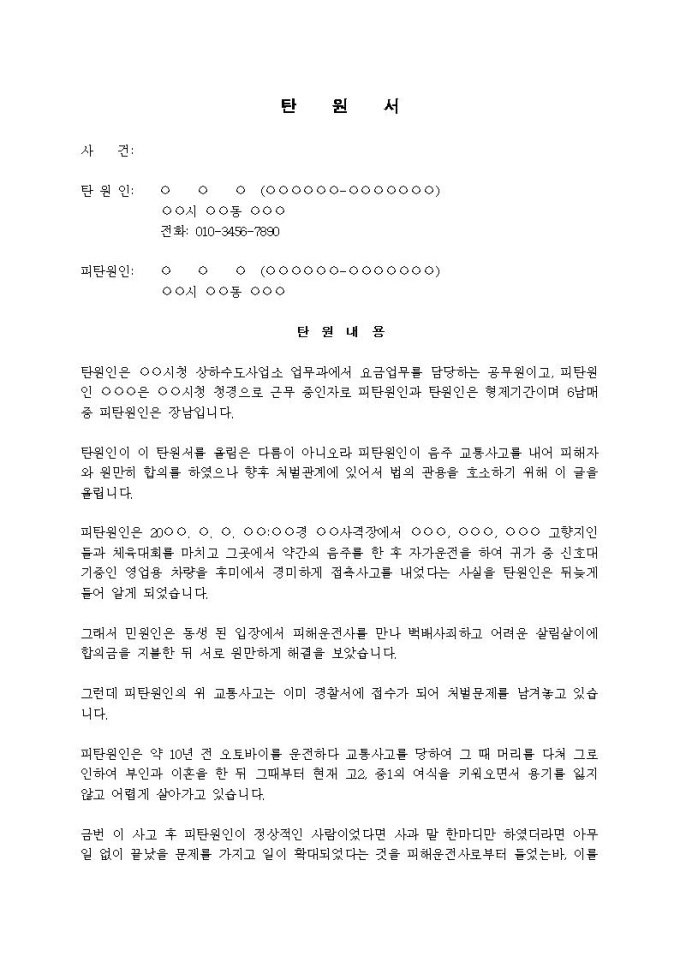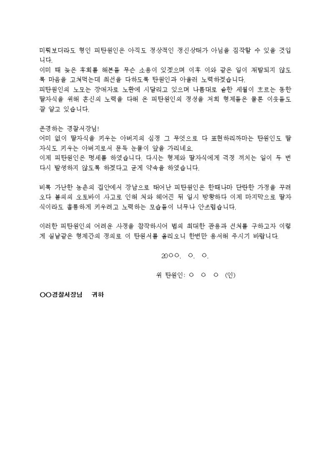 9,000원/월(탄원서)교통사고를 낸 형에 대한 선처 호소입니다.