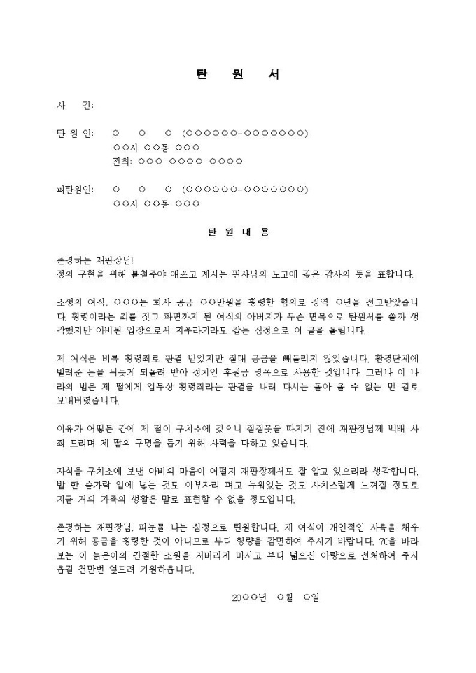 (탄원서)업무상 횡령죄에 대한 부당성 주장입니다.