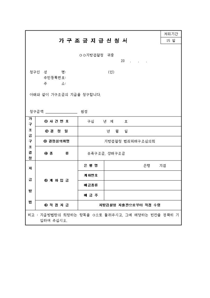 9,000원/월가구조금지급신청서입니다.