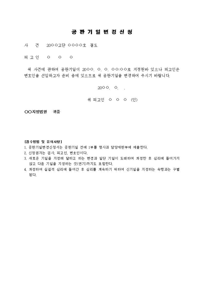 9,000원/월공판기일변경신청서(1)입니다.