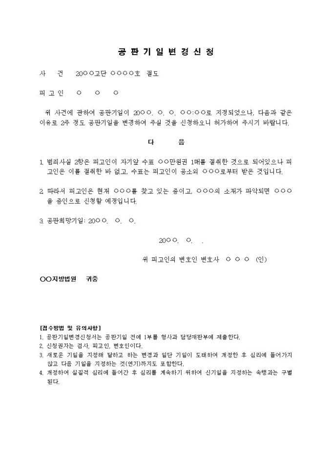 9,000원/월공판기일변경신청서(5)입니다.