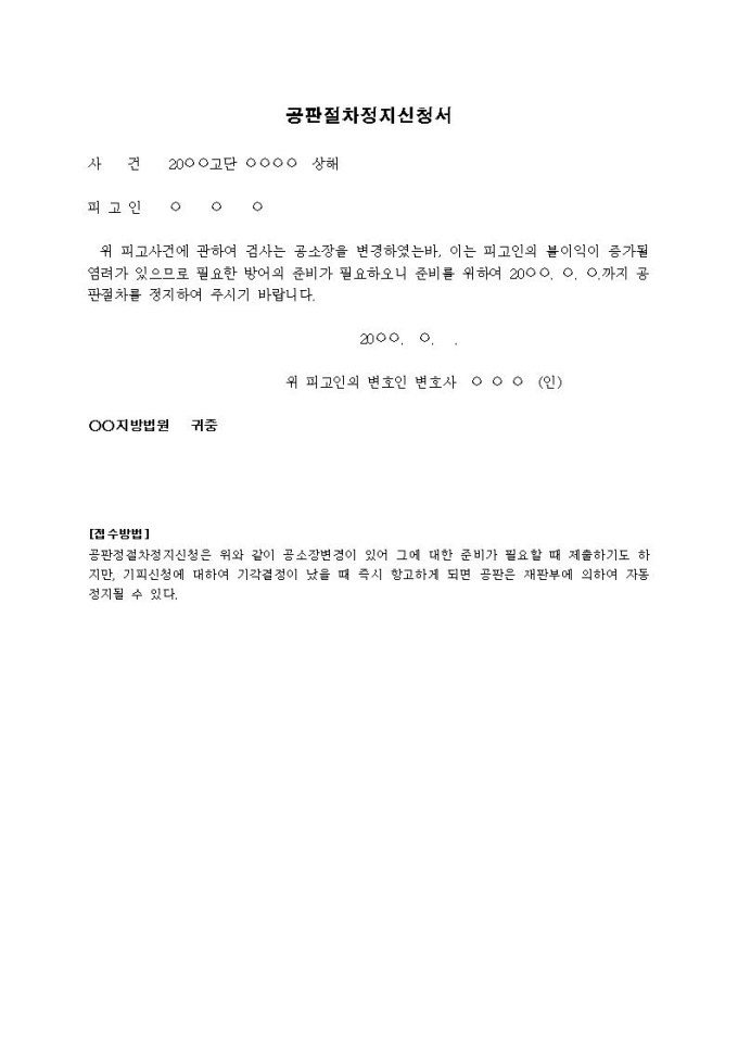 9,000원/월공판절차정지신청서입니다.