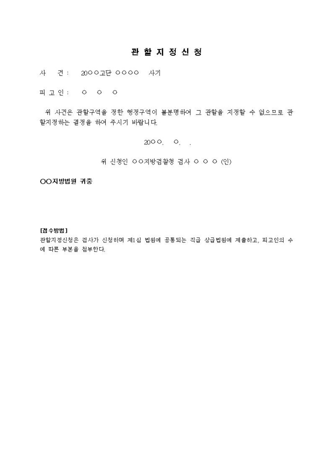 관할지정서(2) (검사가 신청하는 경우)입니다.