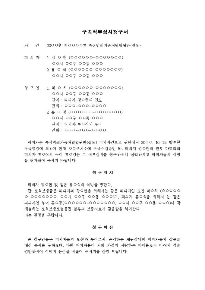 9,000원/월구속적부심사청구서(2) (특수절도사건)입니다.