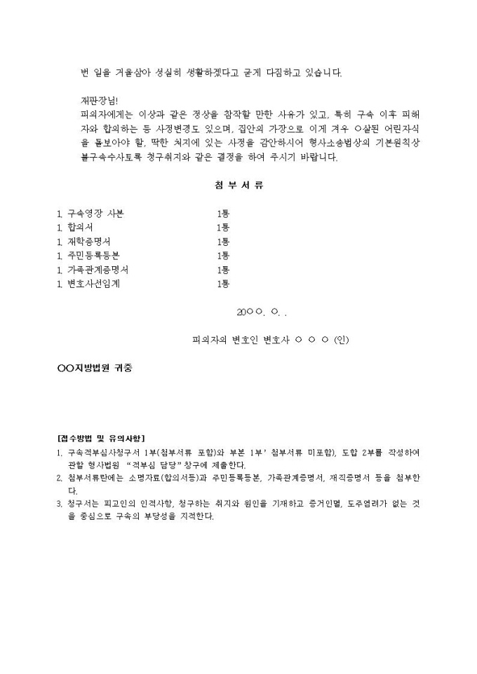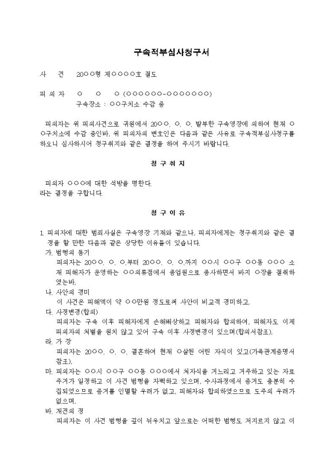 9,000원/월구속적부심사청구서(4) (절도)입니다.