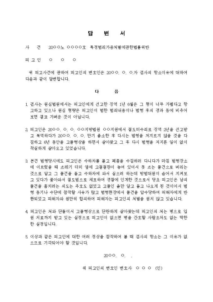 답 변 서입니다.