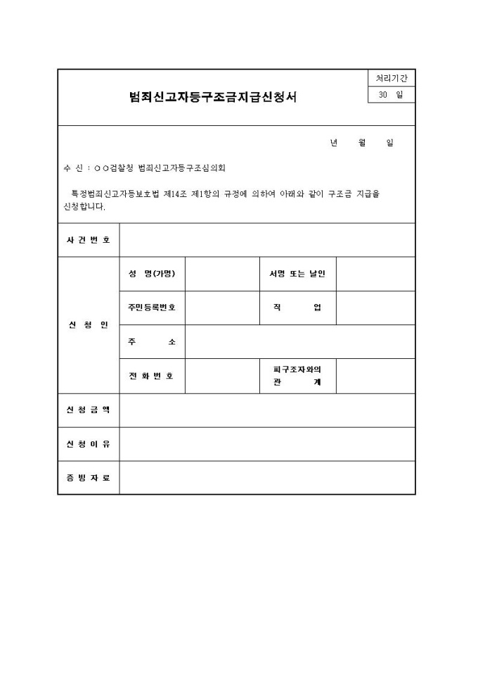 범죄신고자등구조금지급신청서