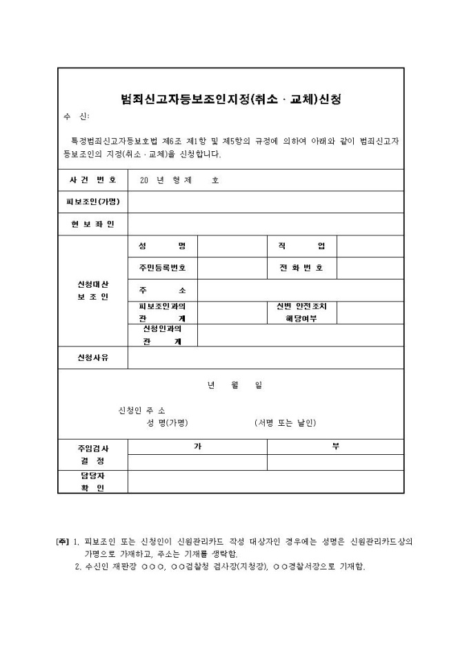 범죄신고자등보조인지정(취소·교체)신청