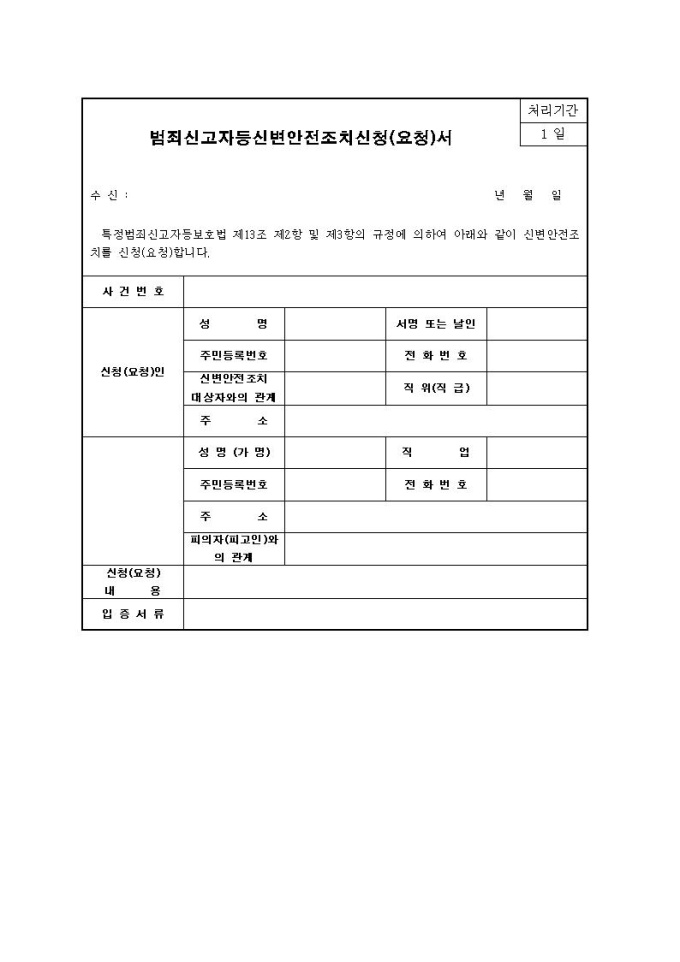 9,000원/월범죄신고자등신변안전조치신청(요청)서입니다.
